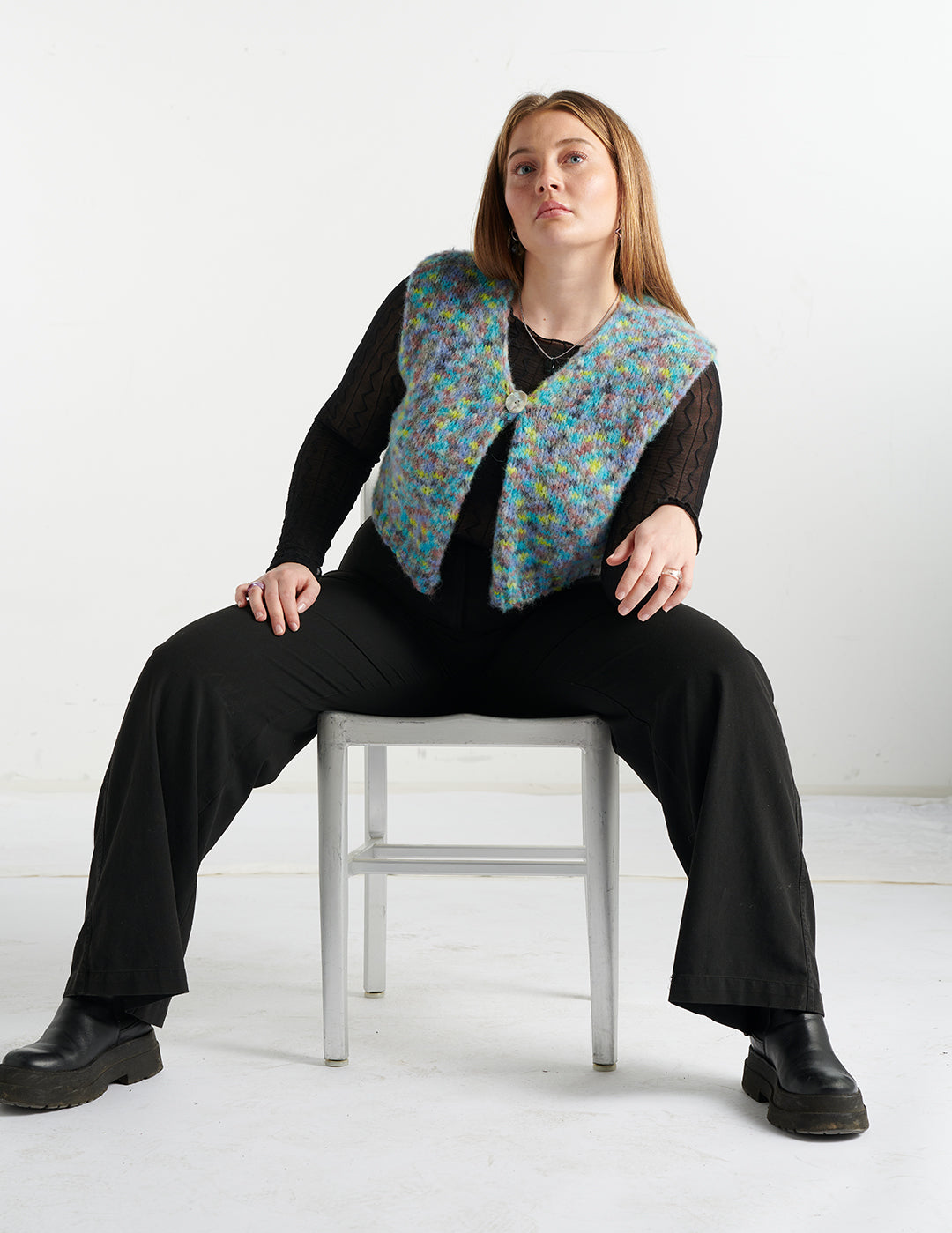Der leicht oversized Schnitt sorgt für eine lockere Passform, die dich bequem und stilvoll durch den Tag begleitet. Die weiche Alpaka-Wolle fällt sanft und verleiht der Weste eine lässige, mühelose Eleganz.