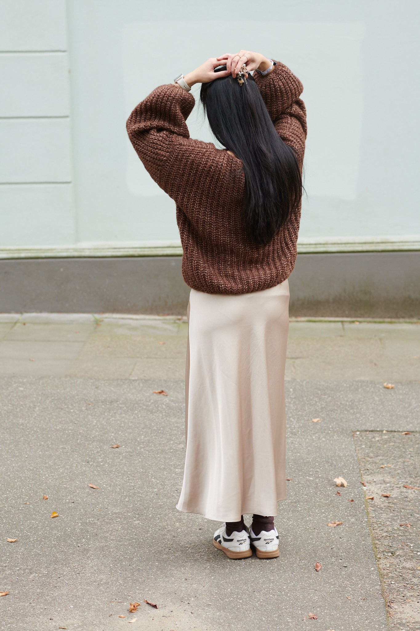 Der leicht oversized Schnitt sorgt für eine lockere Passform, die dich bequem und stilvoll durch den Tag begleitet. Die weiche Alpaka-Wolle fällt sanft und verleiht der Weste eine lässige, mühelose Eleganz.