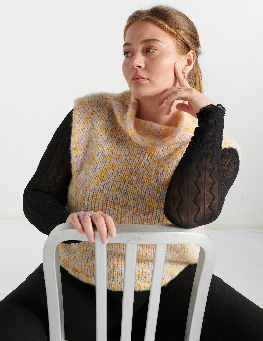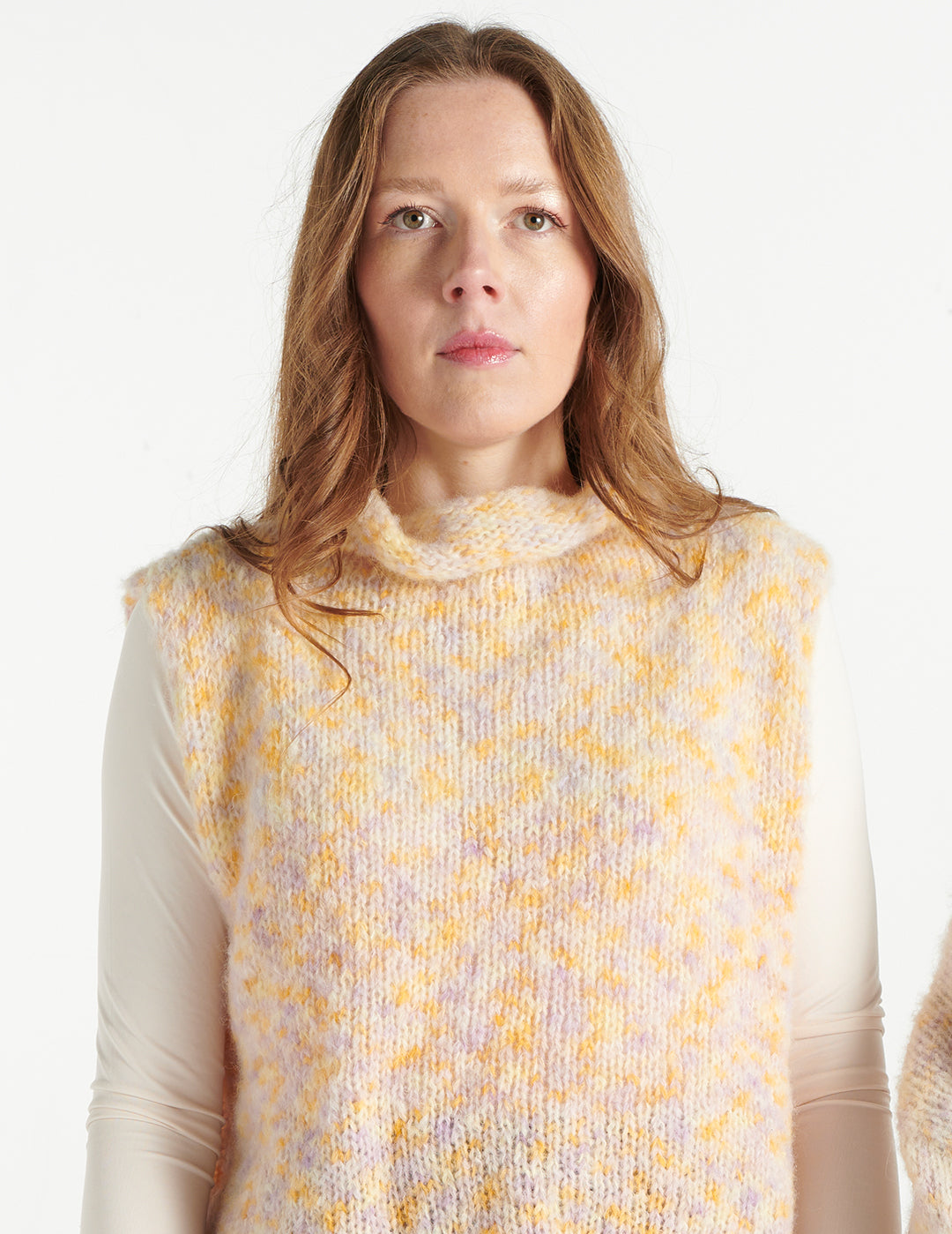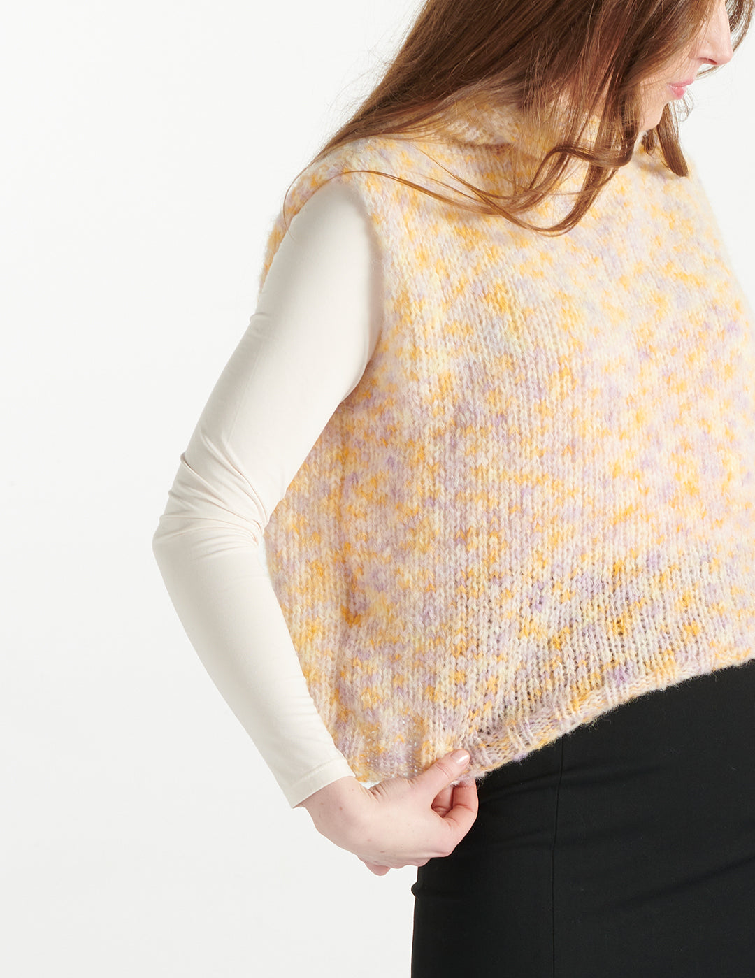 Alpaka Pullunder – gelb-flieder meliert