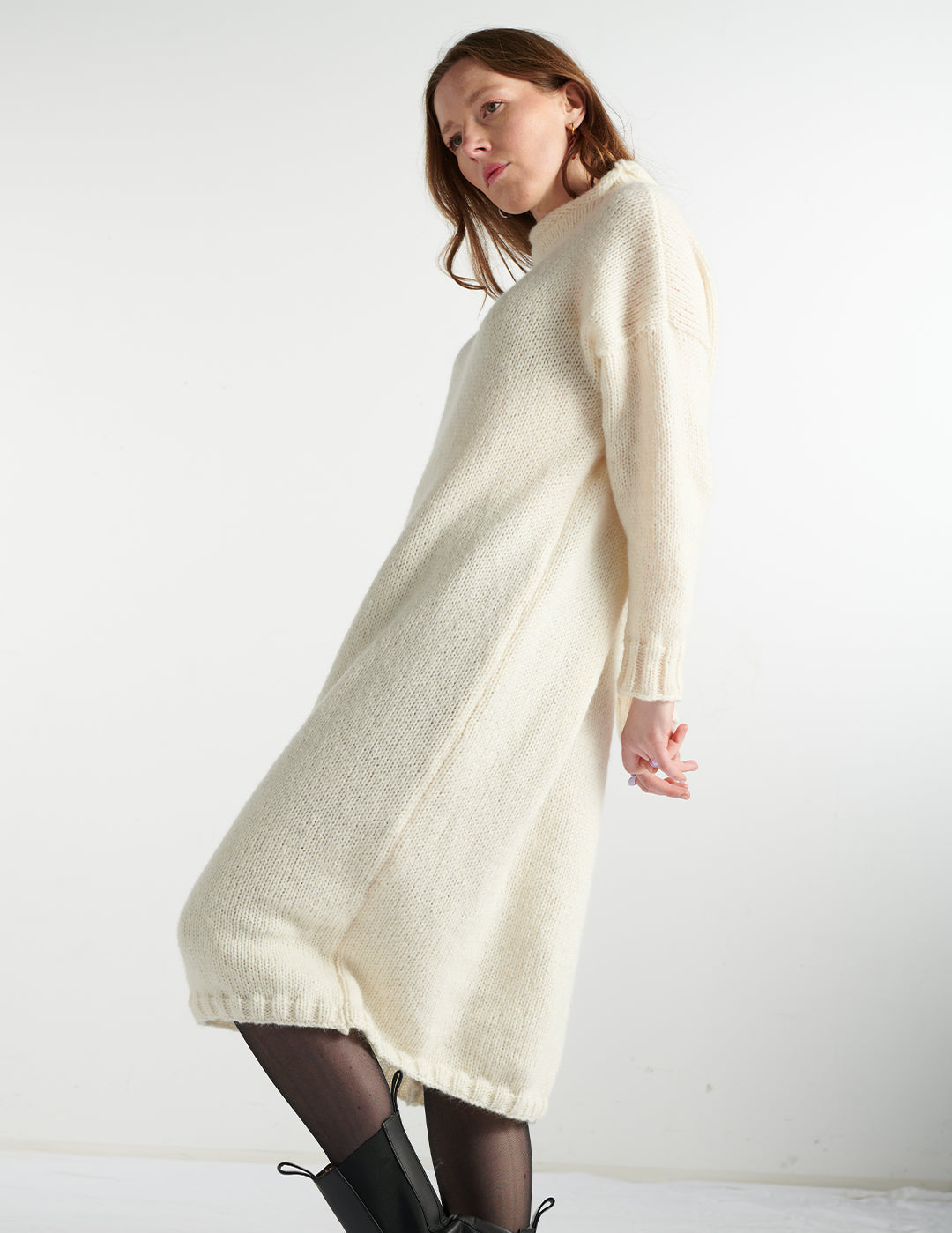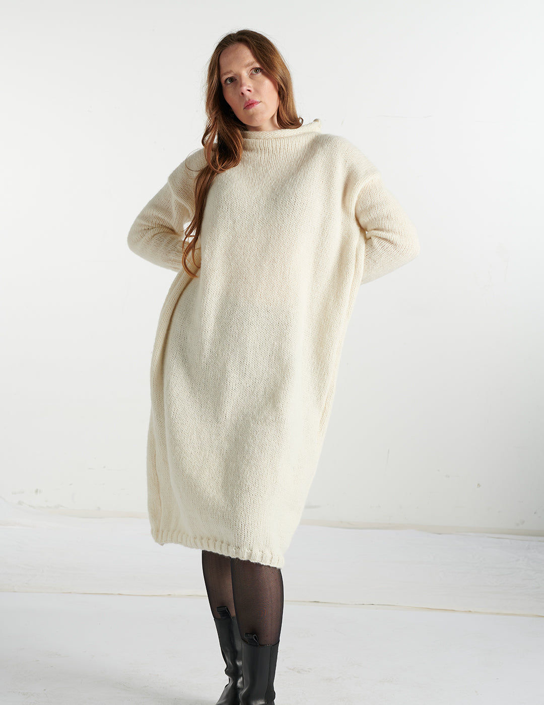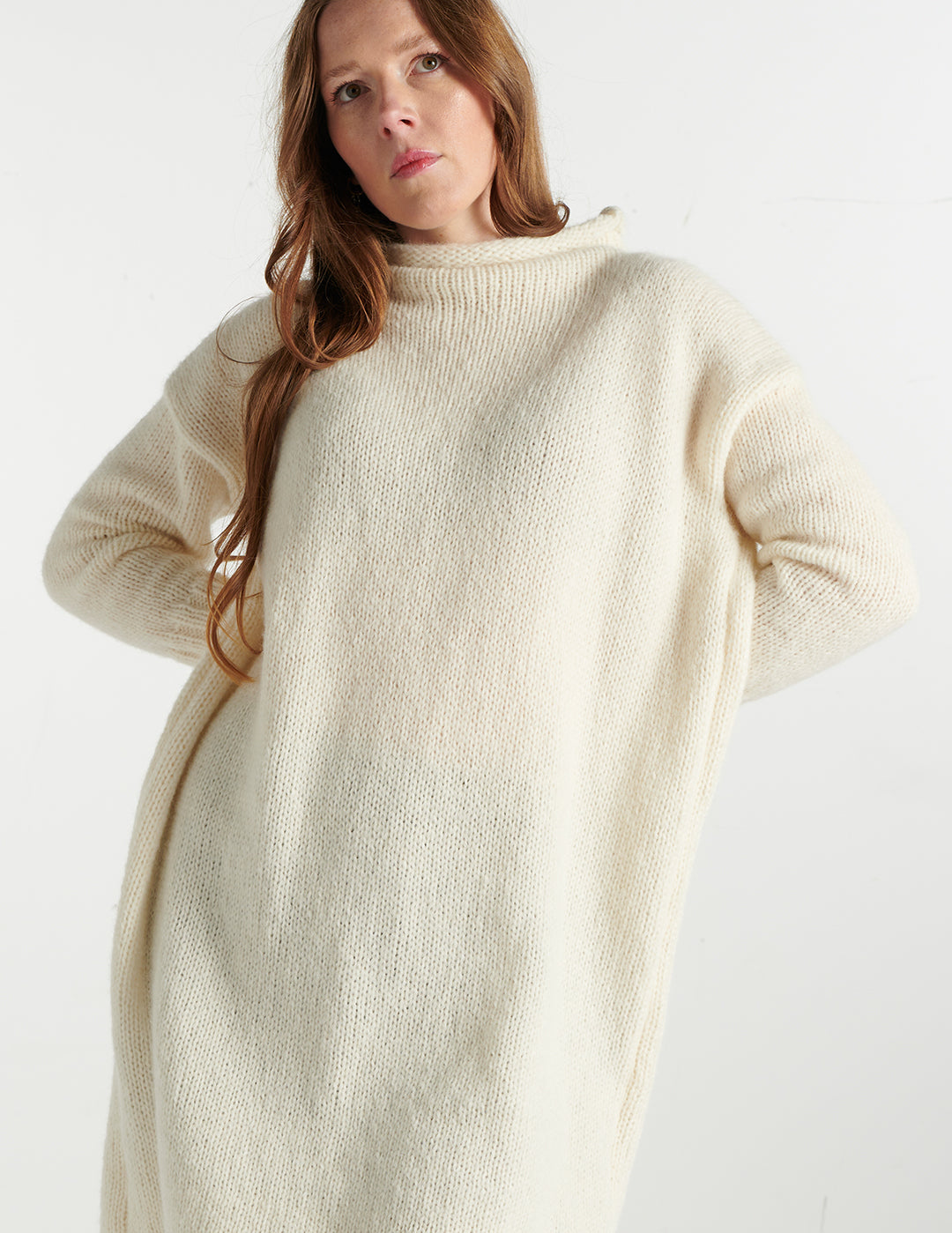 Gefertigt aus weicher Baby-Alpaka-Wolle, schmiegt sich das Kleid sanft an die Haut und bietet höchsten Tragekomfort. Das edle Material sorgt für eine angenehme Wärme, ohne zu beschweren, und verleiht dem Kleid eine dezente, flauschige Optik.